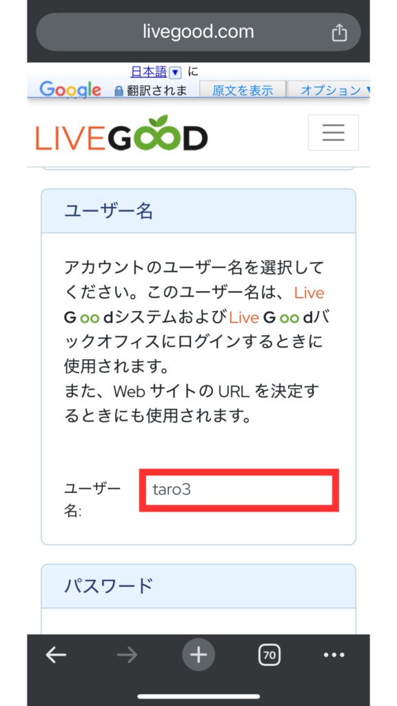 そのため、アメリカ(英語)のLIVE GOODのサイトから登録する必要があります。
